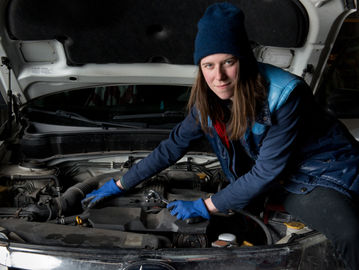 Want to save some bucks? Change your own oil. A workshop in which humaws learn to clean the oil cache of a vehicle and replace the filter and the oil. Jacks, oil pans, filters and such.